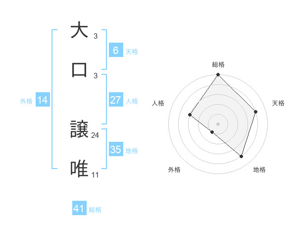 大口 譲唯さんの総格は41画の5点!