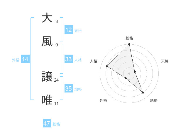 大風 譲唯さんの総格は47画の5点!
