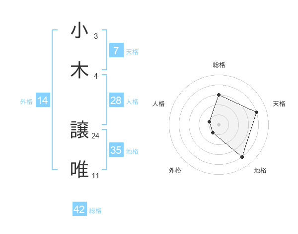 小木 譲唯さんの天格は7画の4点!