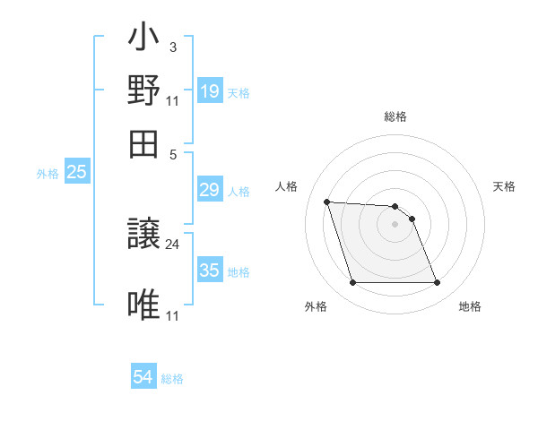 小野田 譲唯さんを姓名の画数から五運を鑑定