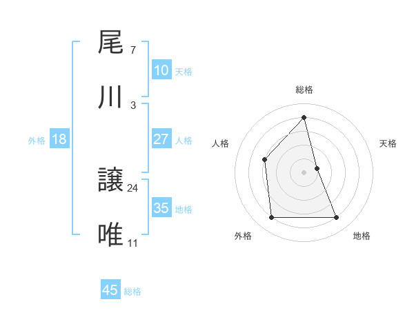 尾川 譲唯さんを姓名の画数から五運を鑑定