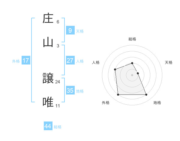庄山 譲唯さんの総格は44画の2点!
