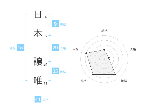 日本 譲唯さんの総格は44画の2点!