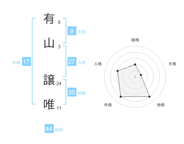 有山 譲唯さんを姓名の画数から五運を鑑定