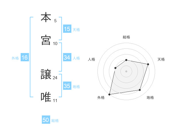 本宮 譲唯さんの総格は50画の2点!