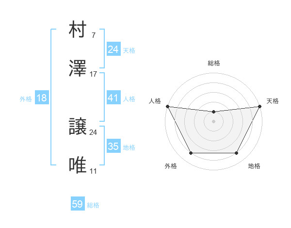村澤 譲唯さんを姓名の画数から五運を鑑定