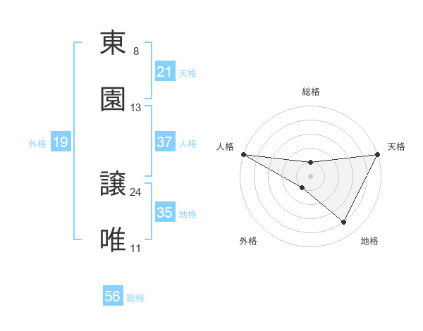 東園 譲唯さんの地格は35画の4点!