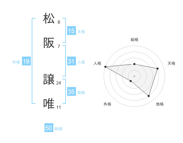 松阪 譲唯さんの総格は50画の2点!