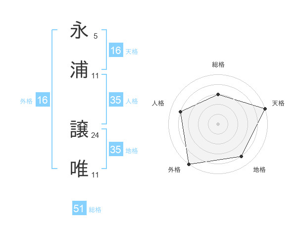 永浦 譲唯さんの総格は51画の3点!