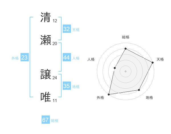 清瀬 譲唯さんの外格は23画の5点!