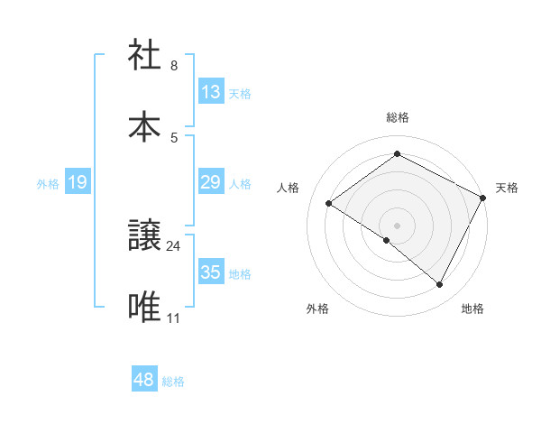 社本 譲唯さんの天格は13画の5点!