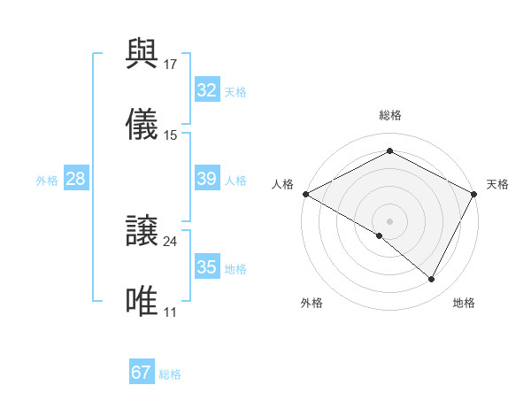 與儀 譲唯さんの総格は67画の4点!