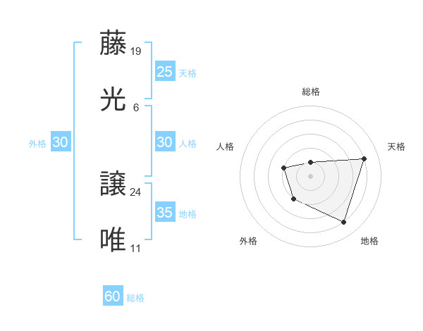 藤光 譲唯さんの総格は60画の1点!