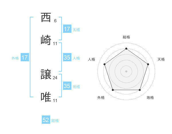 西崎 譲唯さんの総格は52画の4点!