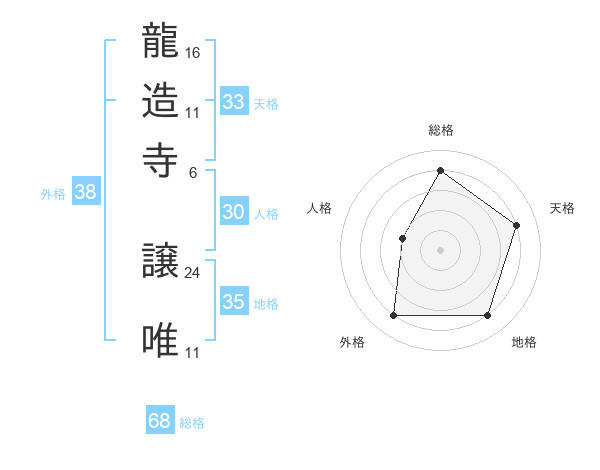 龍造寺 譲唯さんの総格は68画の4点!