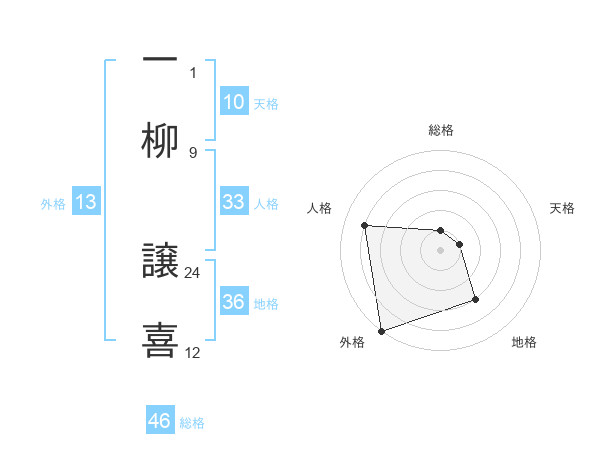 一柳 譲喜さんを姓名の画数から五運を鑑定