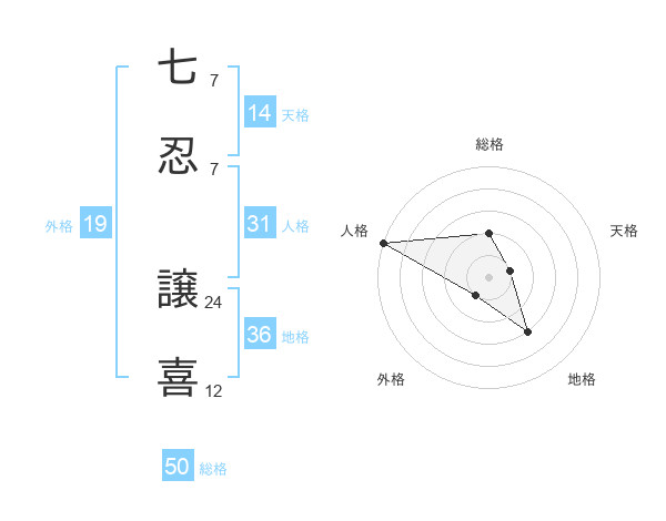 七忍 譲喜さんの総格は50画の2点!