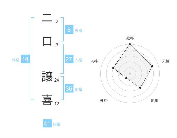 二口 譲喜さんを姓名の画数から五運を鑑定