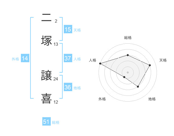 二塚 譲喜さんの総格は51画の3点!