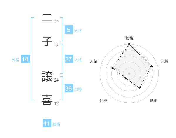二子 譲喜さんの総格は41画の5点!