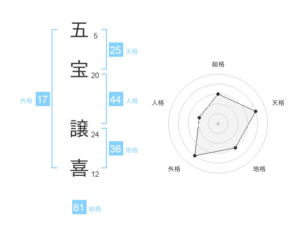 五宝 譲喜さんの総格は61画の3点!