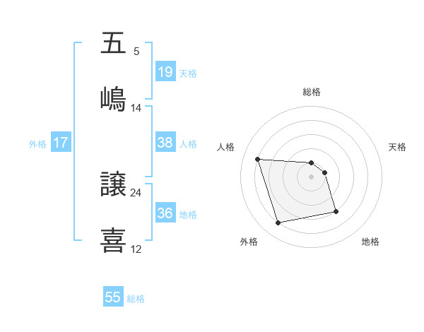 五嶋 譲喜さんを姓名の画数から五運を鑑定