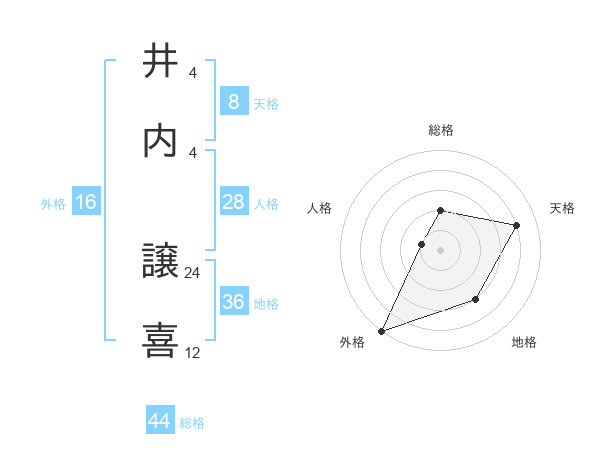 井内 譲喜さんを姓名の画数から五運を鑑定