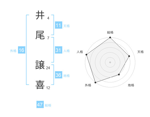 井尾 譲喜さんの総格は47画の5点!