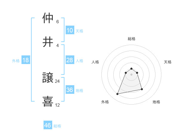 仲井 譲喜さんの総格は46画の1点!