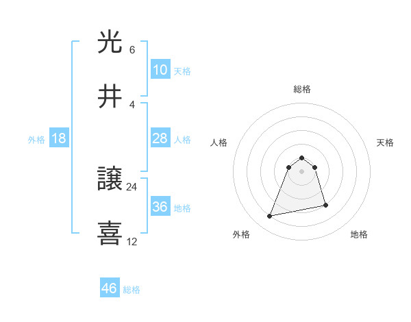 光井 譲喜さんの総格は46画の1点!