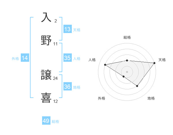 入野 譲喜さんの総格は49画の2点!
