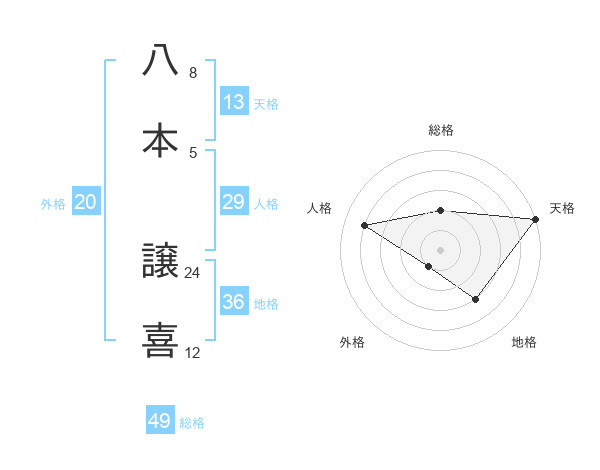 八本 譲喜さんの総格は49画の2点!
