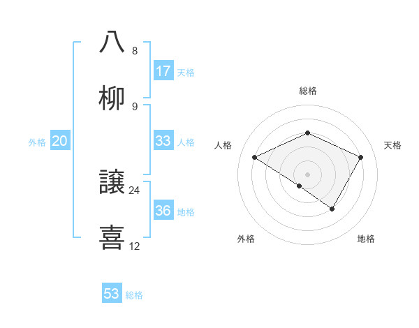 八柳 譲喜さんを姓名の画数から五運を鑑定