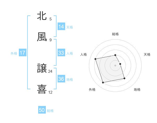 北風 譲喜さんを姓名の画数から五運を鑑定