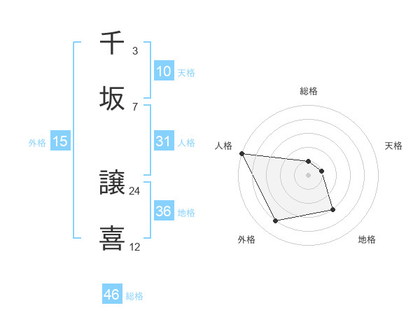 千坂 譲喜さんを姓名の画数から五運を鑑定