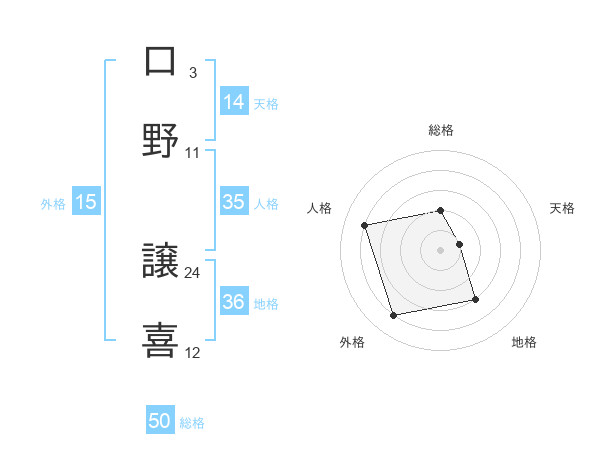口野 譲喜さんの総格は50画の2点!