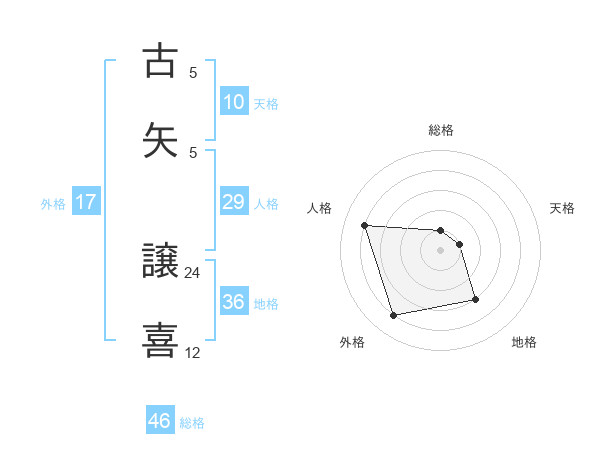 古矢 譲喜さんの総格は46画の1点!
