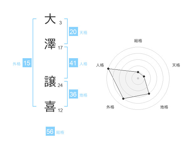 大澤 譲喜さんを姓名の画数から五運を鑑定