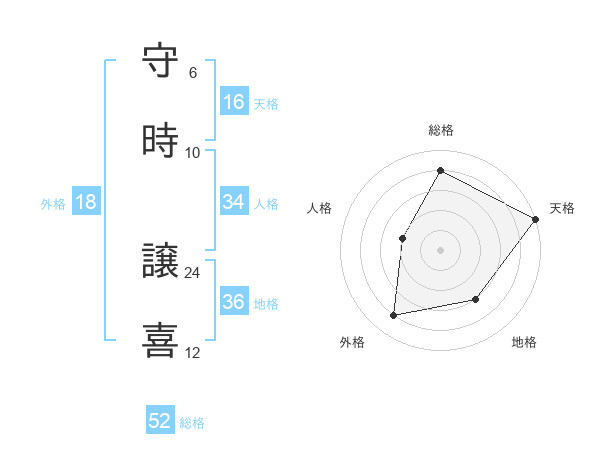 守時 譲喜さんの総格は52画の4点!