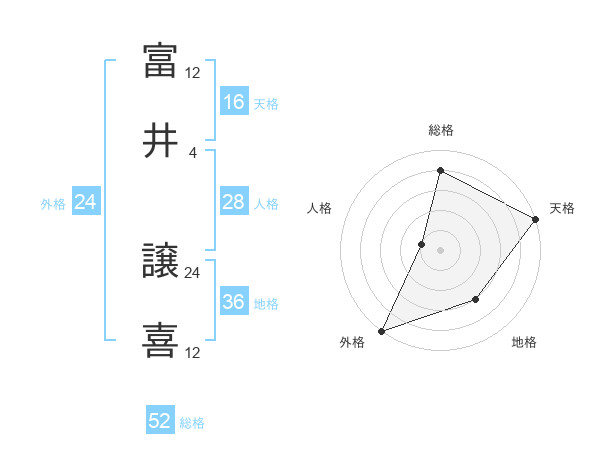 富井 譲喜さんを姓名の画数から五運を鑑定
