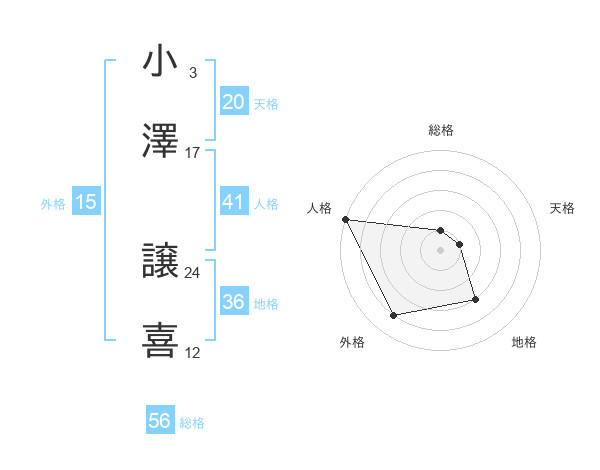 小澤 譲喜さんの総格は56画の1点!