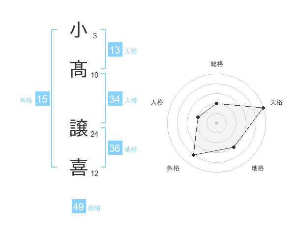 小髙 譲喜さんを姓名の画数から五運を鑑定