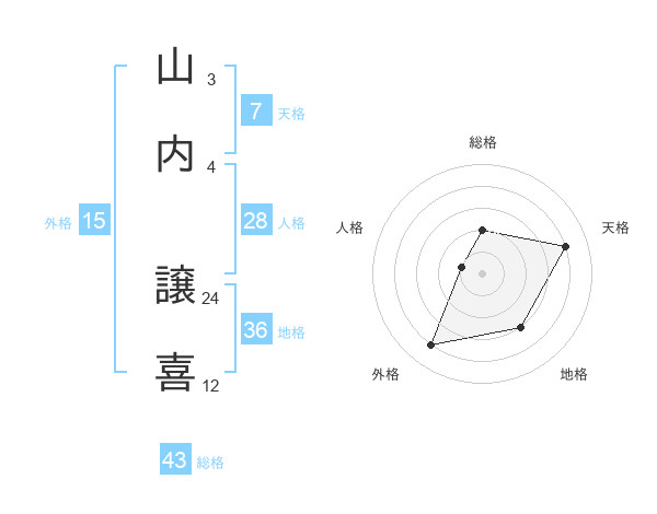 山内 譲喜さんを姓名の画数から五運を鑑定
