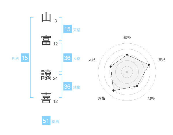 山富 譲喜さんを姓名の画数から五運を鑑定