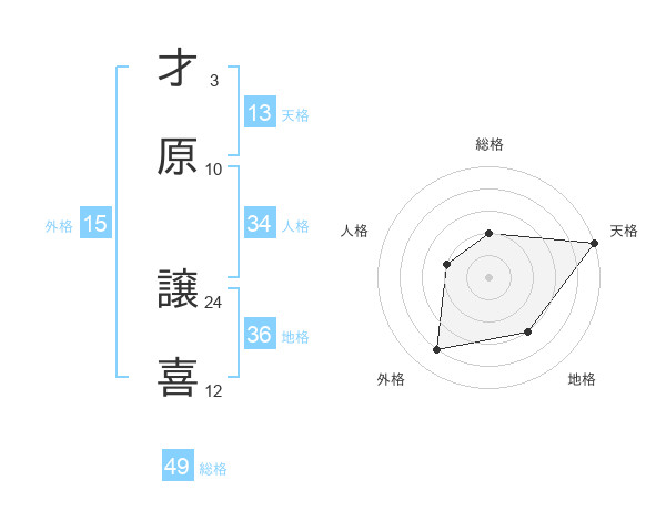 才原 譲喜さんの天格は13画の5点!