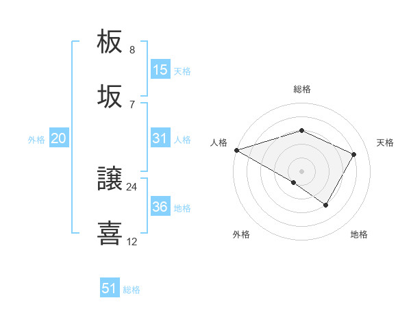 板坂 譲喜さんを姓名の画数から五運を鑑定