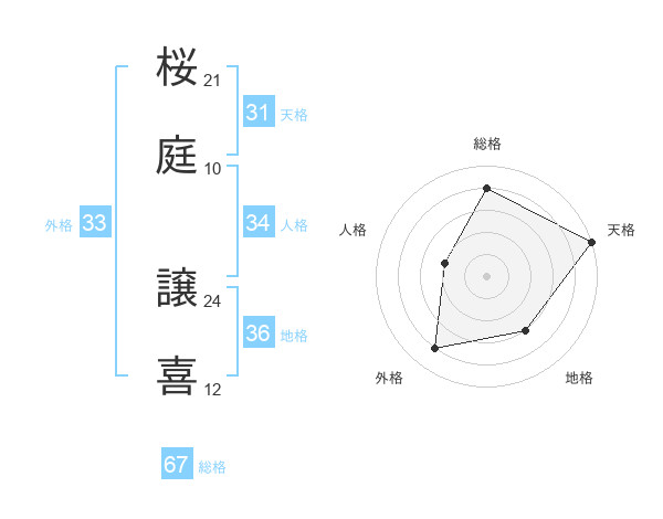 桜庭 譲喜さんの総格は67画の4点!