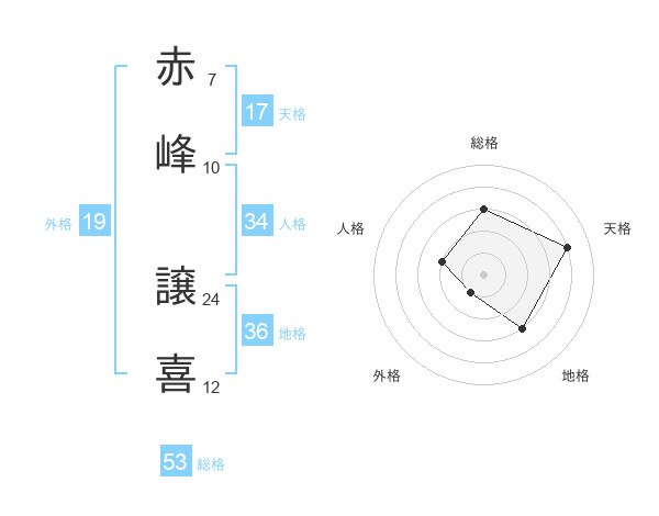 赤峰 譲喜さんを姓名の画数から五運を鑑定
