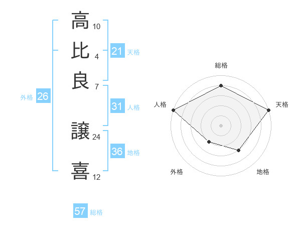 高比良 譲喜さんの総格は57画の4点!