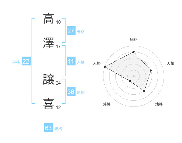 高澤 譲喜さんを姓名の画数から五運を鑑定